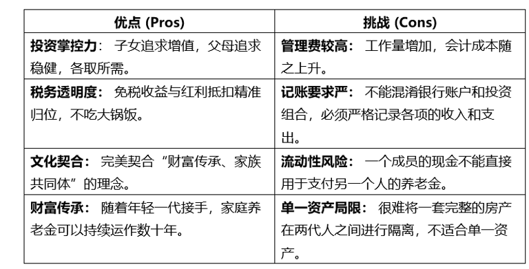 税务清晰: 父母的资产可以进入“完全退休阶段 (Pension Phase)”,收益通常是免税的;而子女仍在“积累阶段 (Accumulation)”,收益按 15% 缴税。互不干扰。